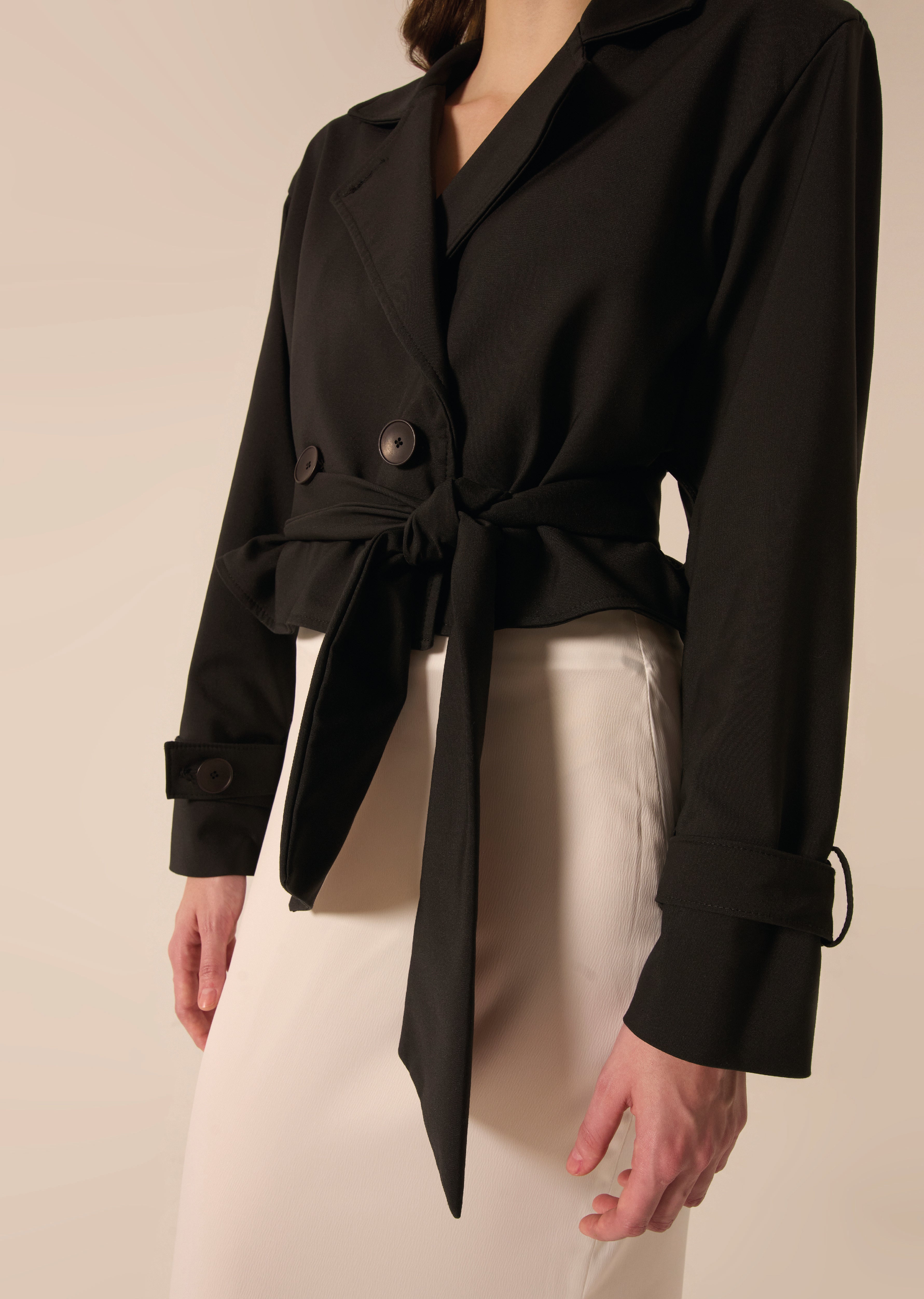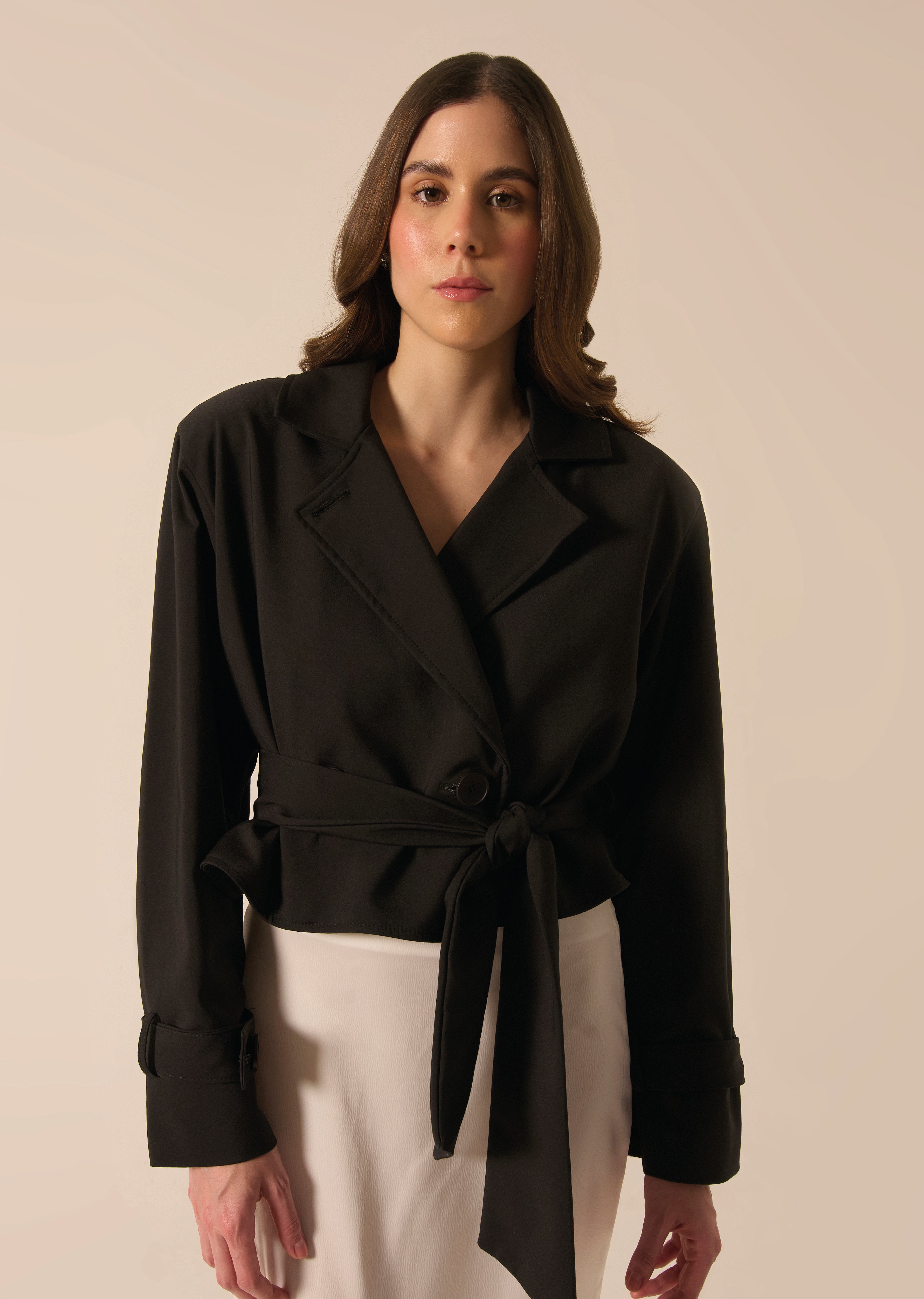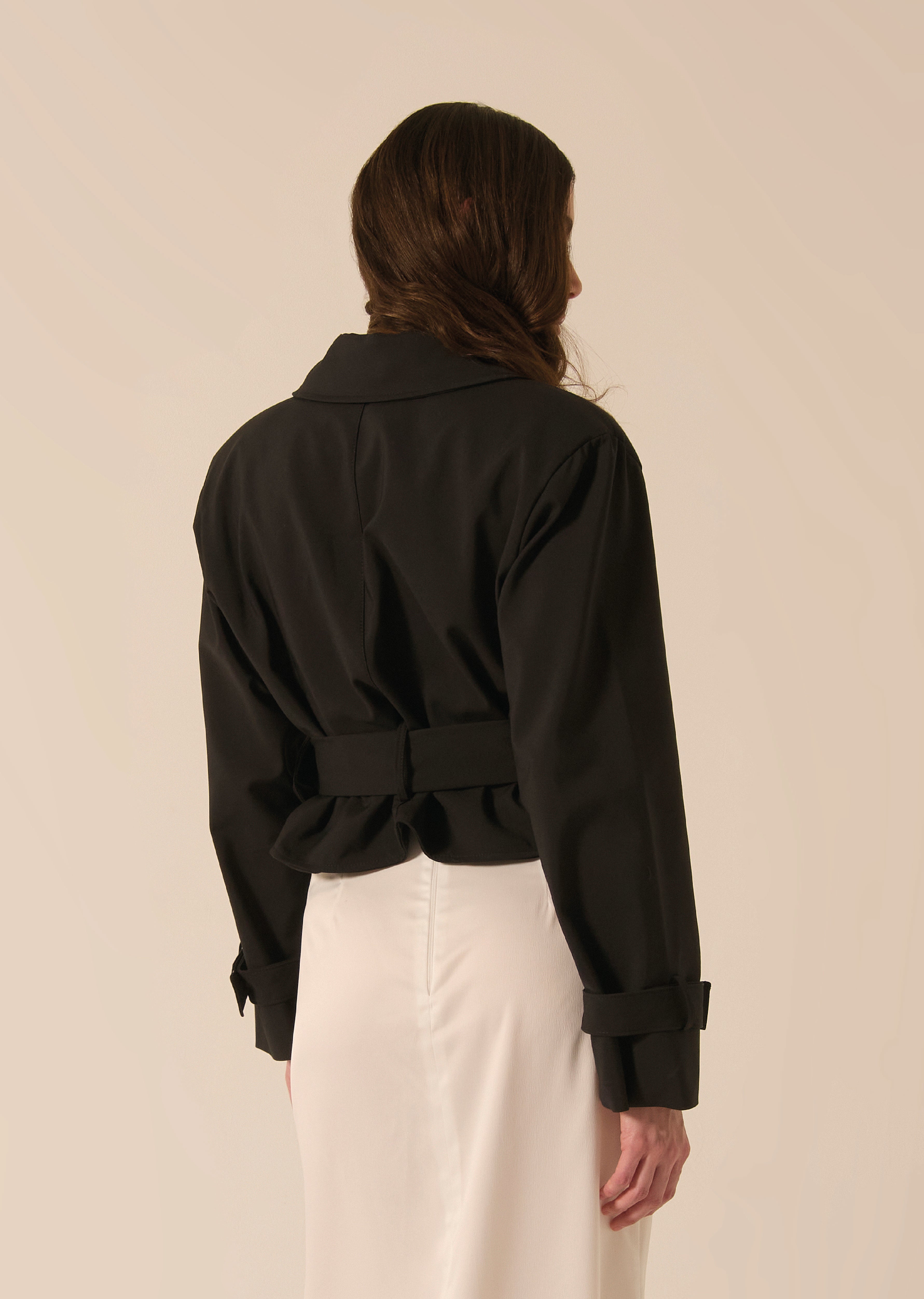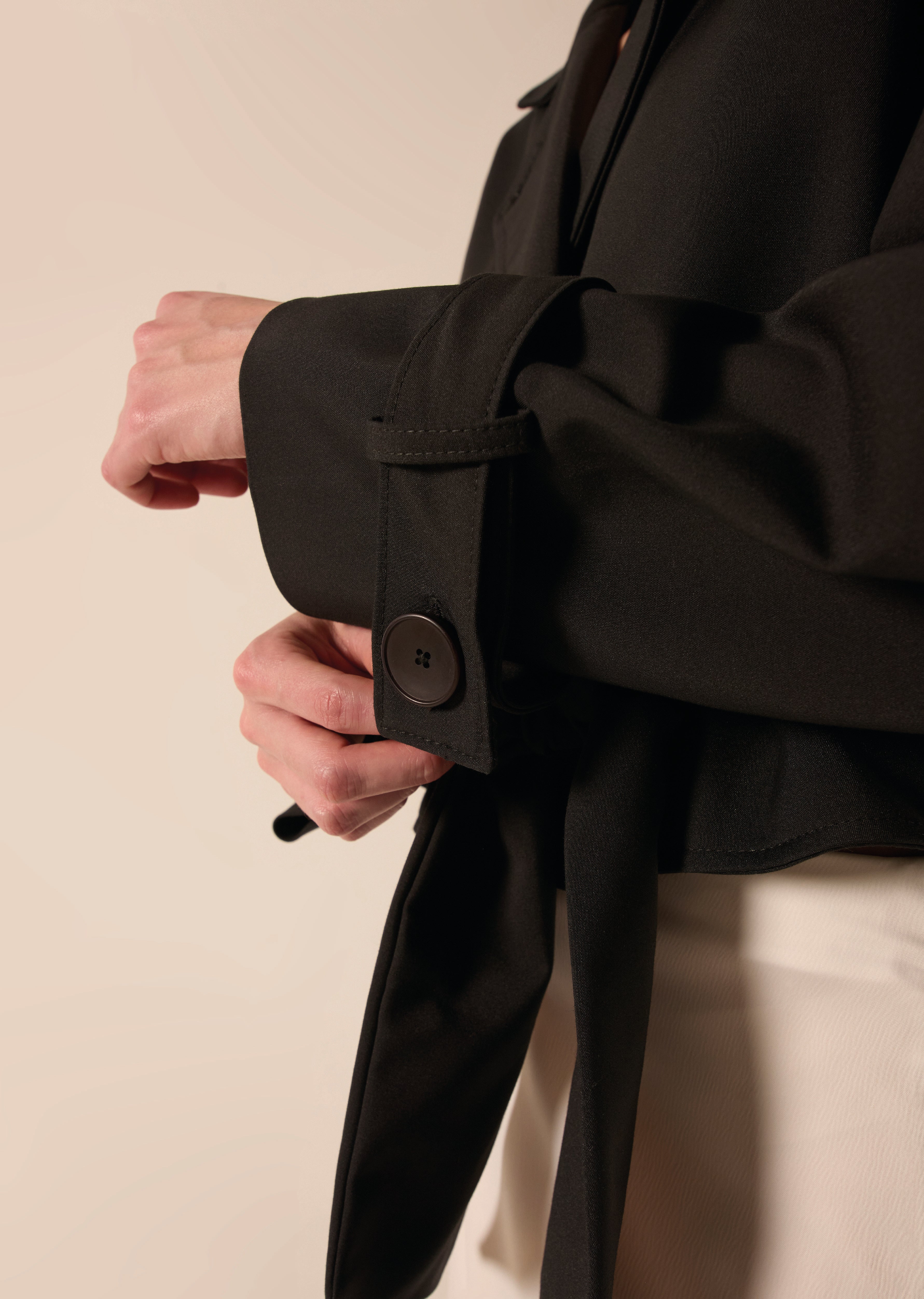 Hemos tomado el clásico trench coat y lo hemos reinventado en un corte cropped, perfecto para hacer layering. Su silueta versátil y sus correas añaden estructura y versatilidad. Llévalo abierto para un vibe casual o abrochado para un look más pulido y sofisticado. La modelo usa talla SM.