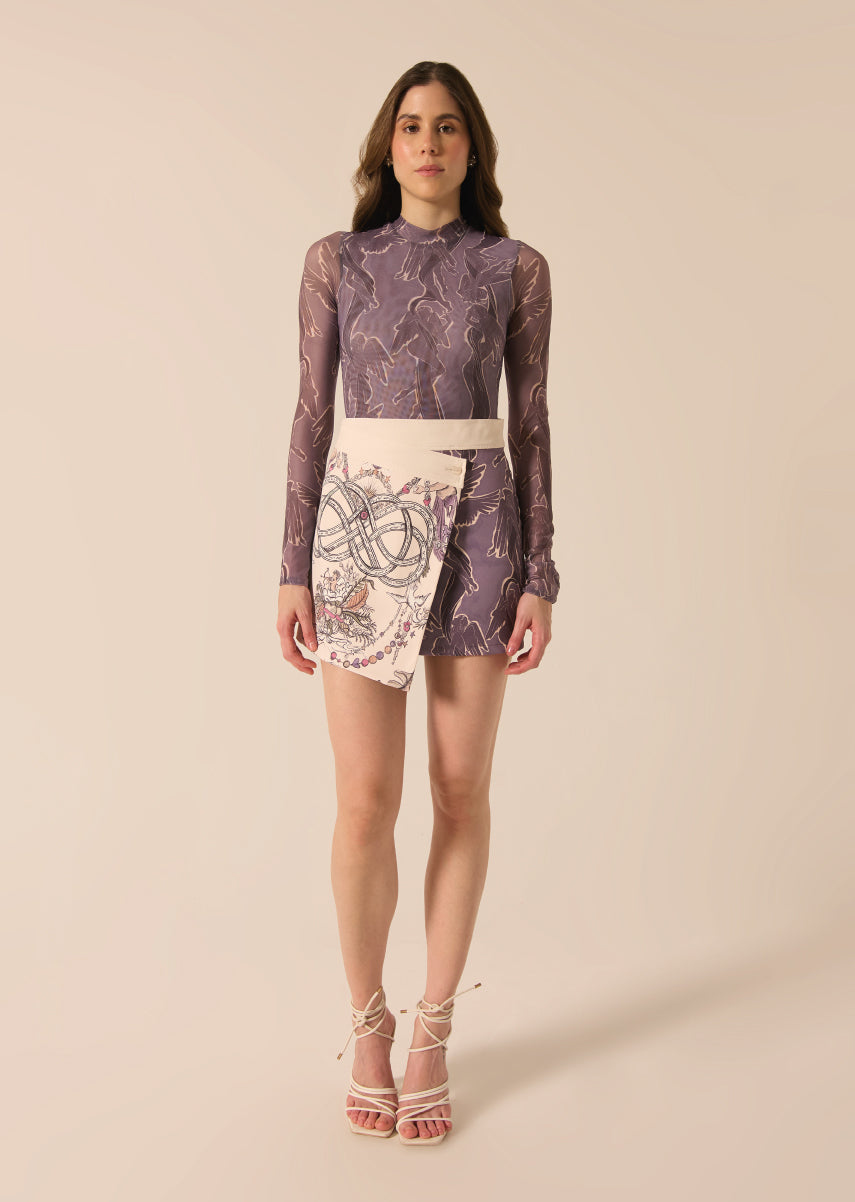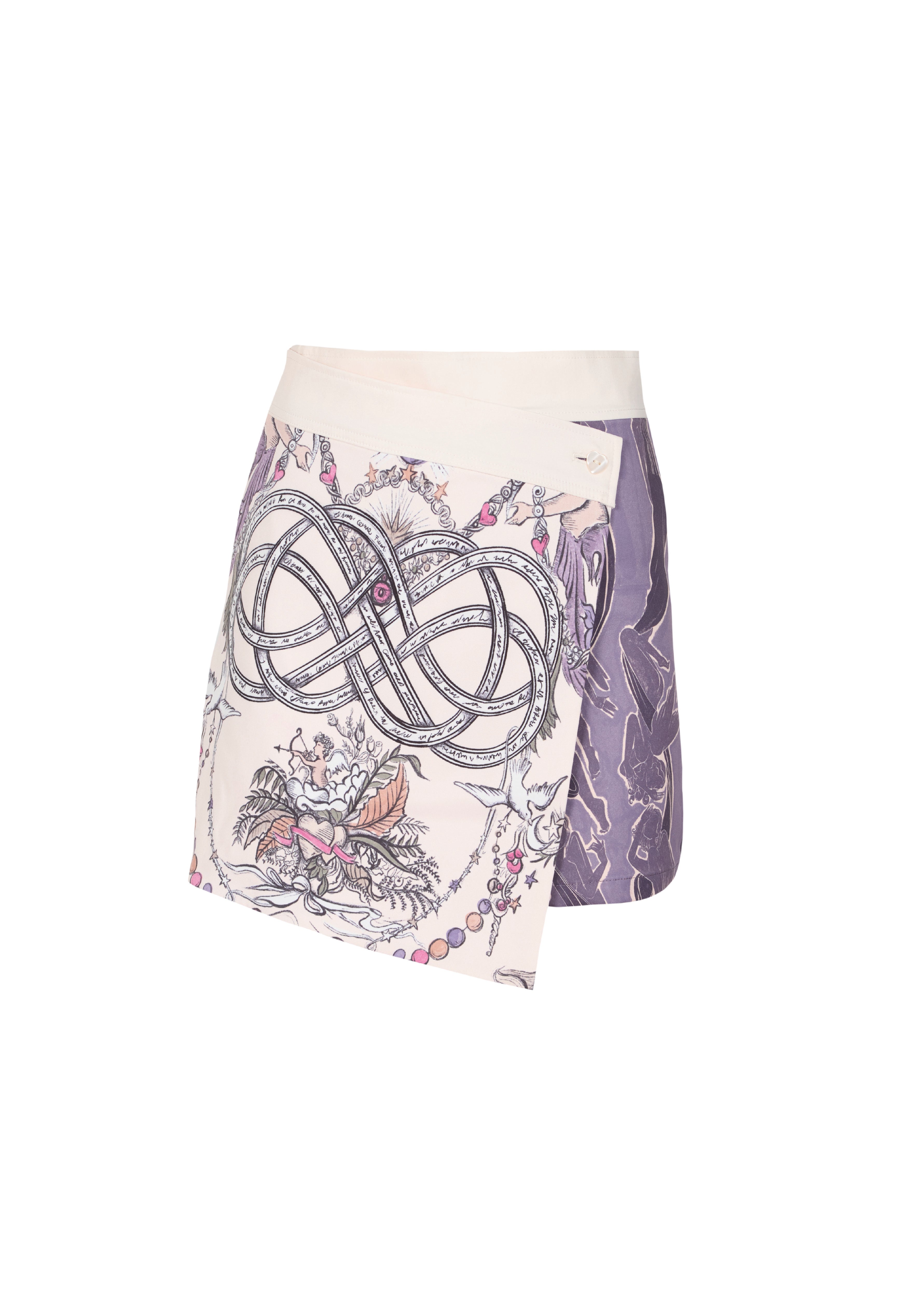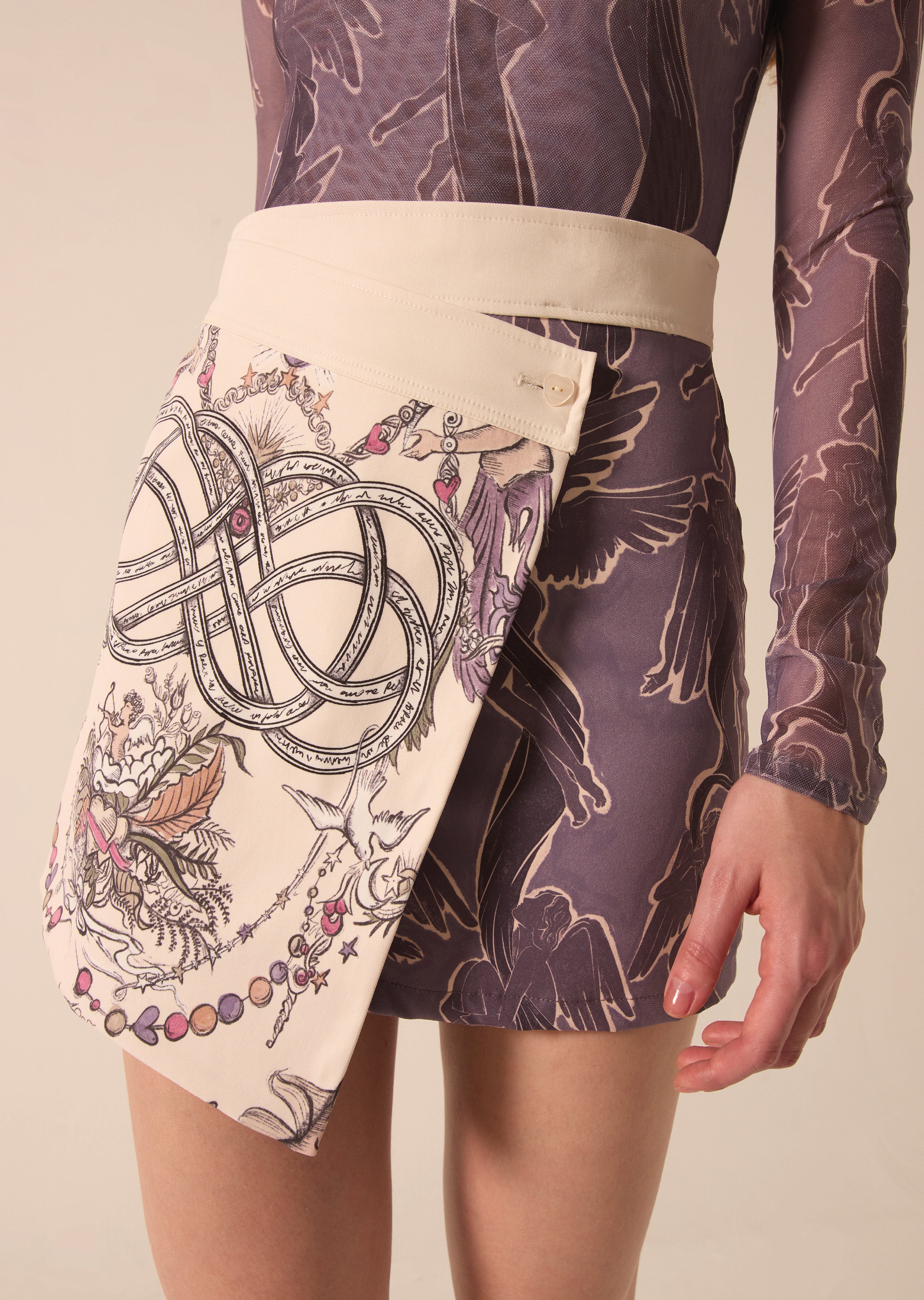Esta mini skirt te da lo mejor de ambos mundos, el estilo cool de una falda asimetrica y la comodidad de un short. Su característica más cool es el doble print que te permite un cambio de estilo instantáneo incorporando una pieza frontal/posterior abrochable la cual puedes mover para cambiar el diseño y darle un giro a tu look. Dos prendas en una para outfits infinitos. La modelo usa talla XS, mide 1,74.