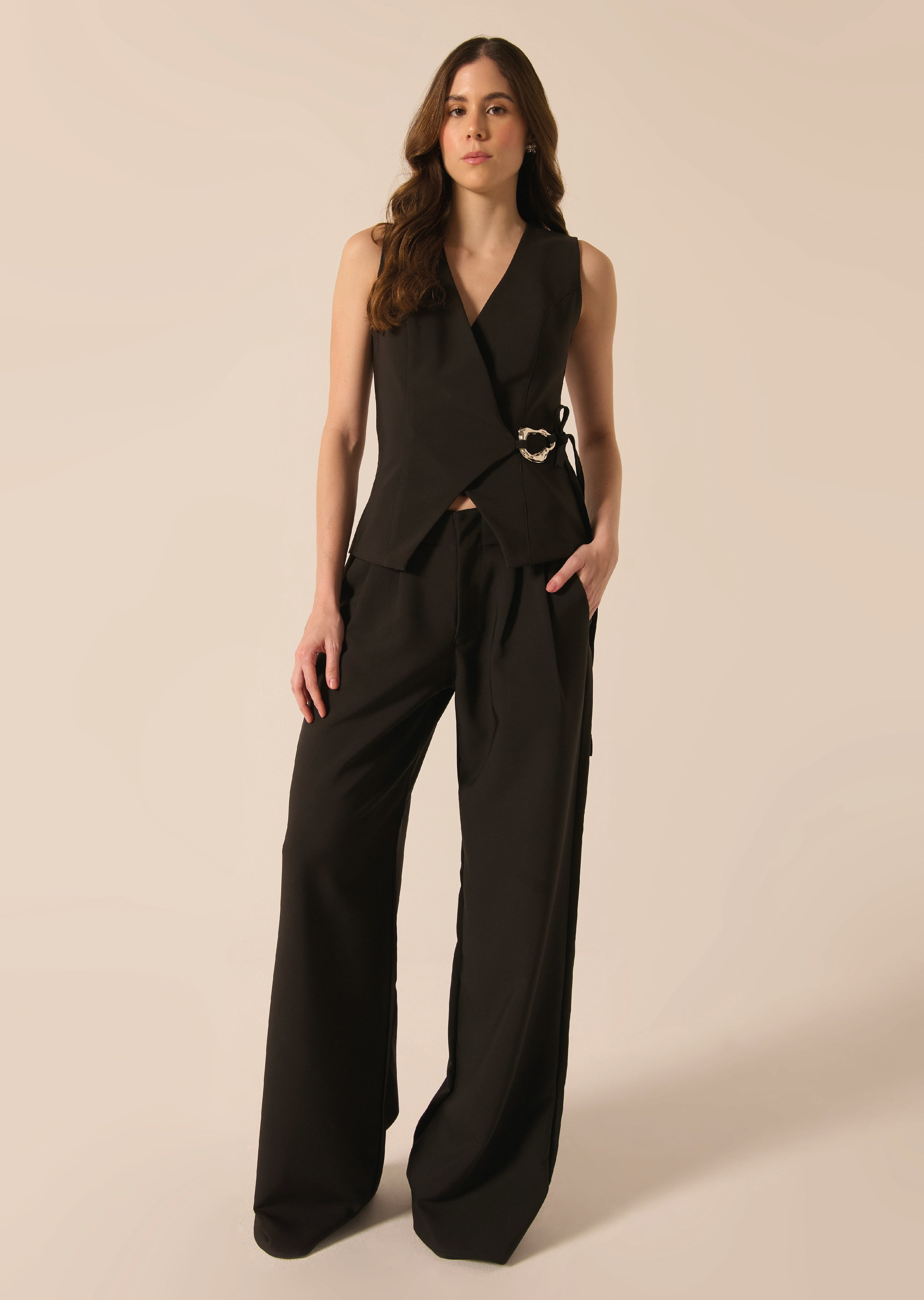 El corte clásico que vuelve a ser cool. Nuestro Holy Pant tiene un diseño limpio y favorecedor, con un corte que se adapta a tu silueta sin sacrificar el movimiento. Su diseño estiliza y alarga la figura, la base ideal tanto para looks de oficina como para outfits de noche, este diseño en color negro es el equilibrio ideal entre la sastrería clasica y la moda urbana La modelo usa talla S, mide 1,74.