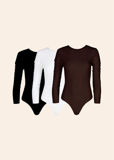 Long Sleeve Body Pack x 3 Blanco/Café/Negro