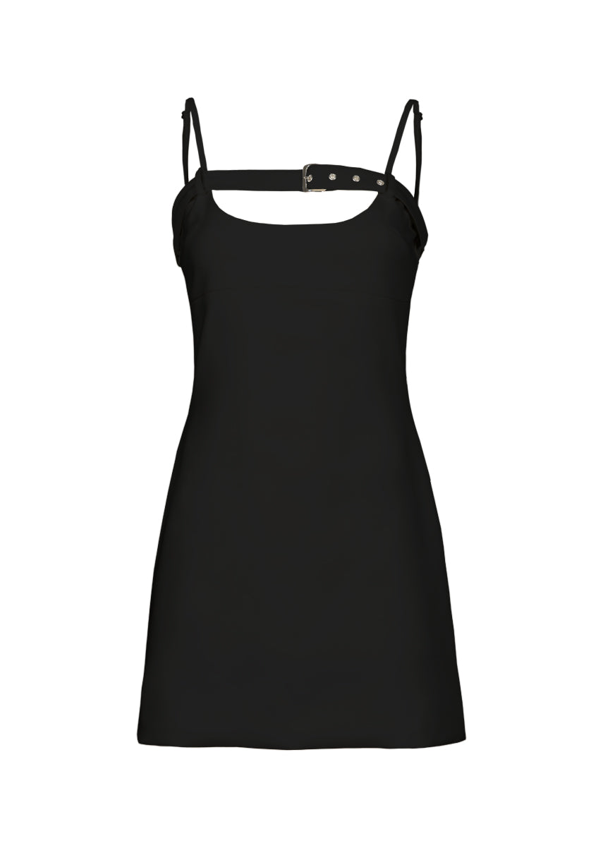 Mini dress de silueta ajustada en la parte superior y fluida en la parte de abajo. Destaca por su cinturón que puede retirarse, tiras delgadas y escote circular, con pinzas que estilizan y cierre posterior semi invisible. Hecho en un dril elegante. Una prenda sofisticada y versátil.