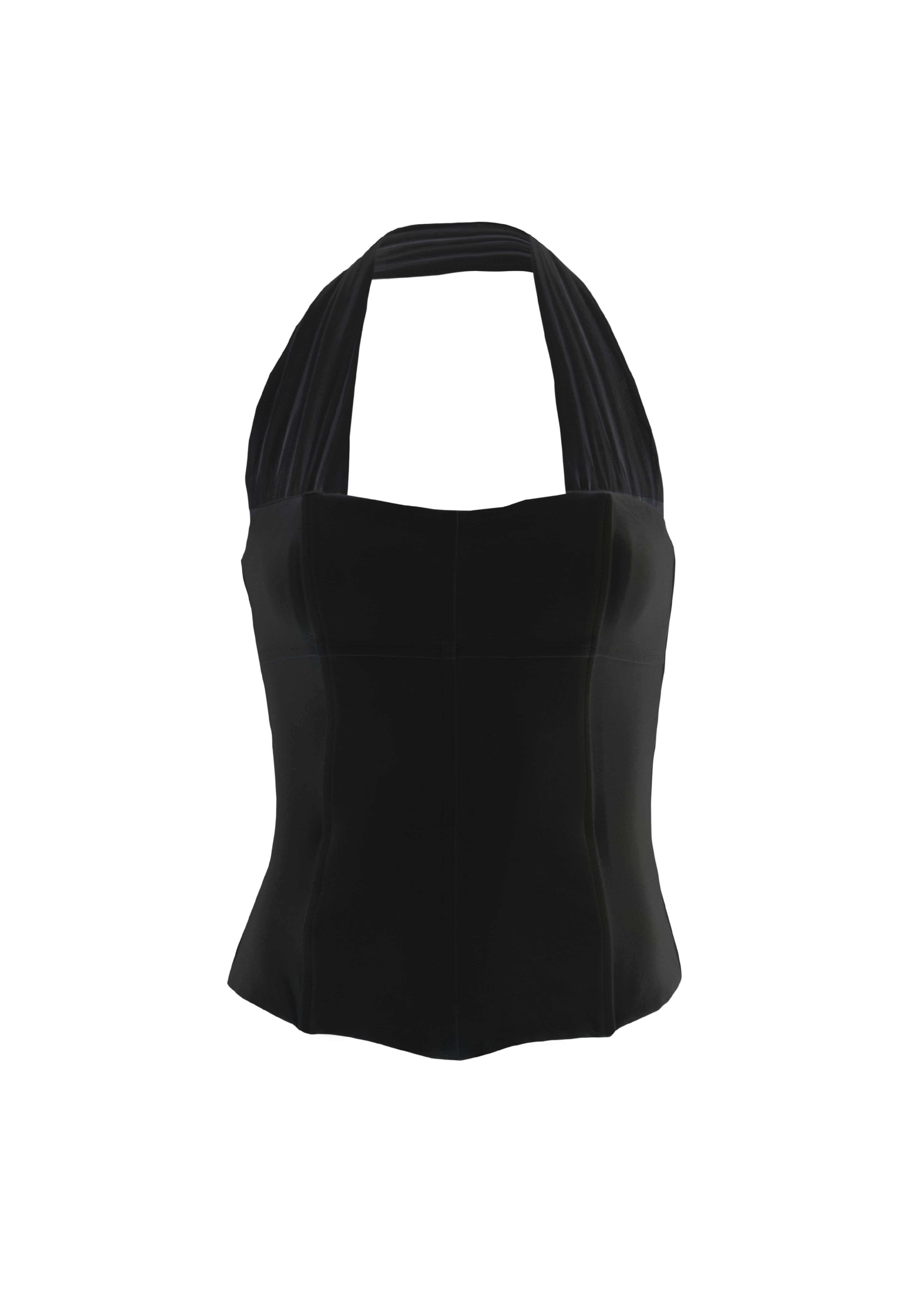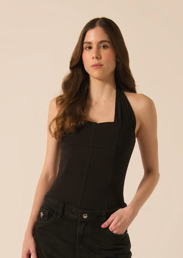 El corset que garantiza un ajuste perfecto y acentúa la cintura. Sus tirantes de mesh añaden una textura  moderna y sexy. Una pieza vanguardista y versatil, usalá con jean para un look casual o con una falda larga para un look más elegante. La modelo usa talla XS.