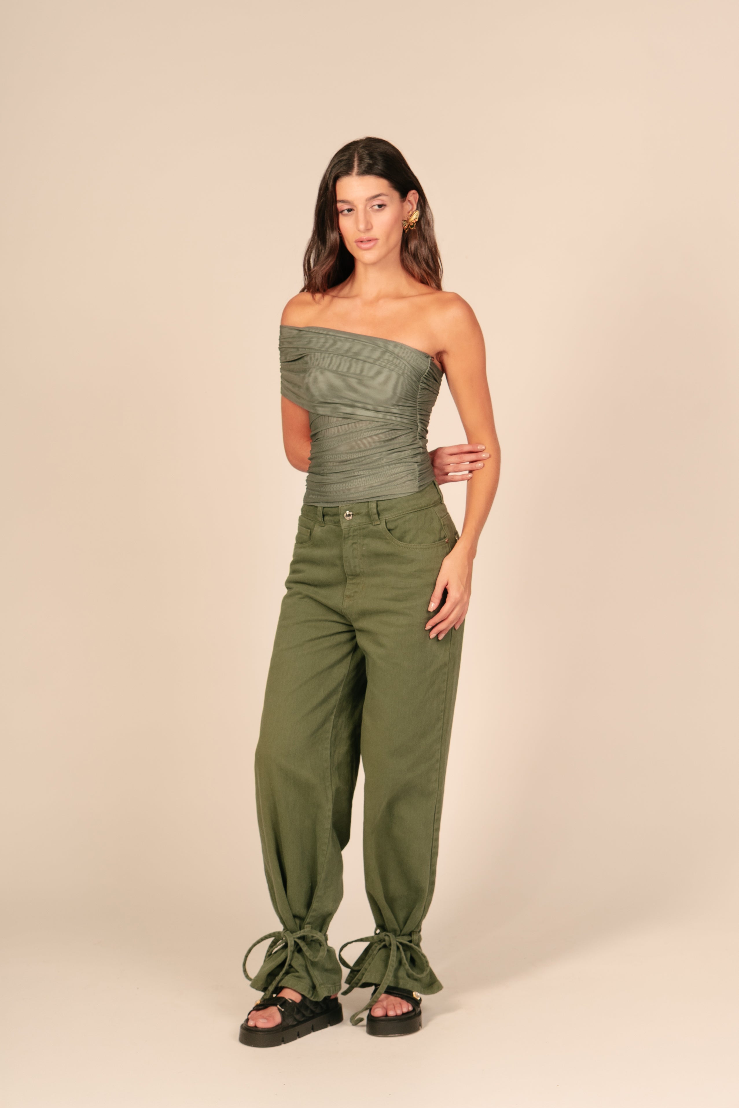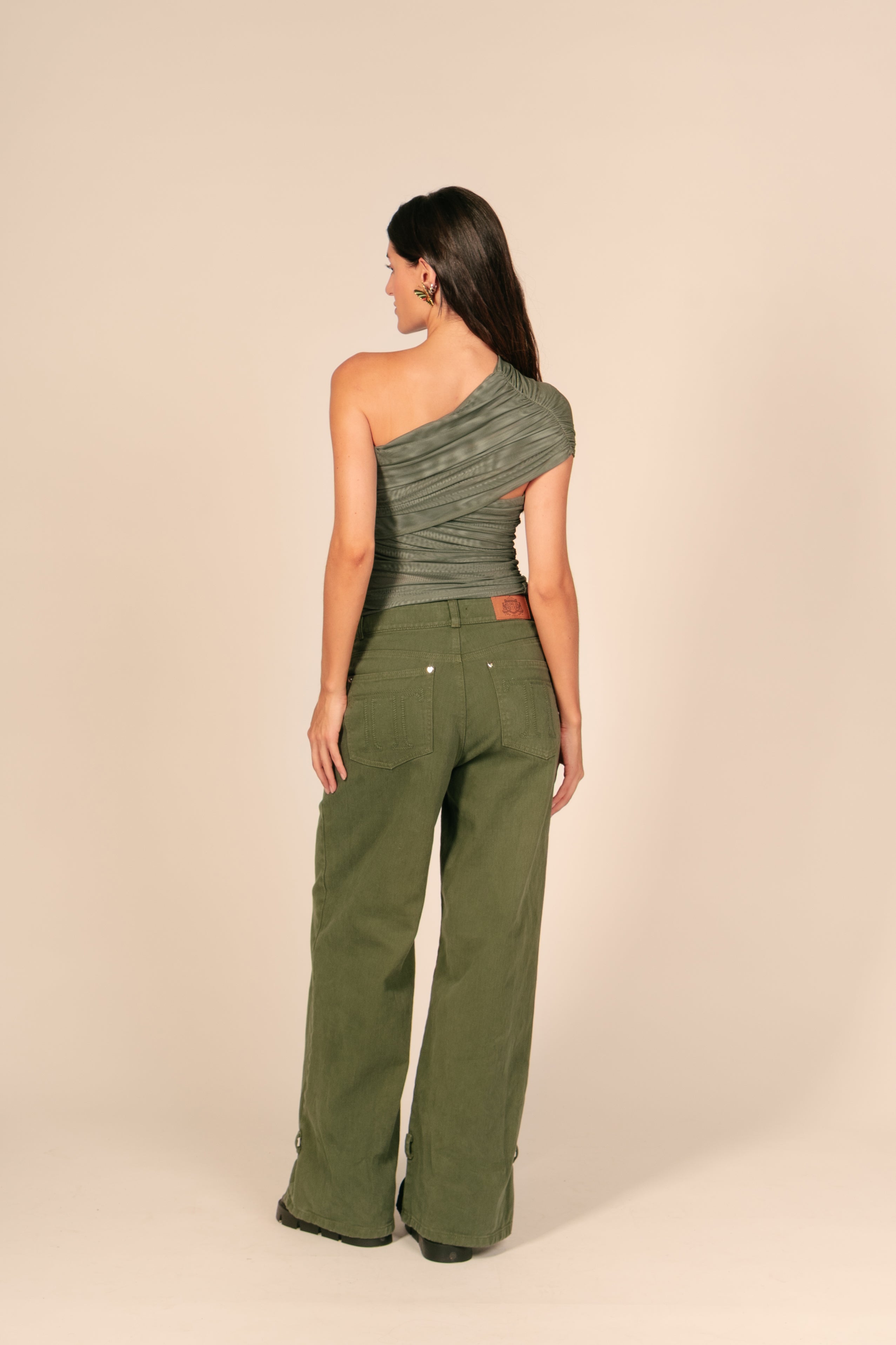 Nuestro top asimétrico en mesh de un solo hombro cuenta con delicados frunces en costados, un top lleno de textura gracias a su base en mesh que añade una armonia entre lo romantico y lo moderno, una pieza versátil y femenina. Su fit se adapta al cuerpo y realza tu silueta con sutileza. La modelo usa talla XS.