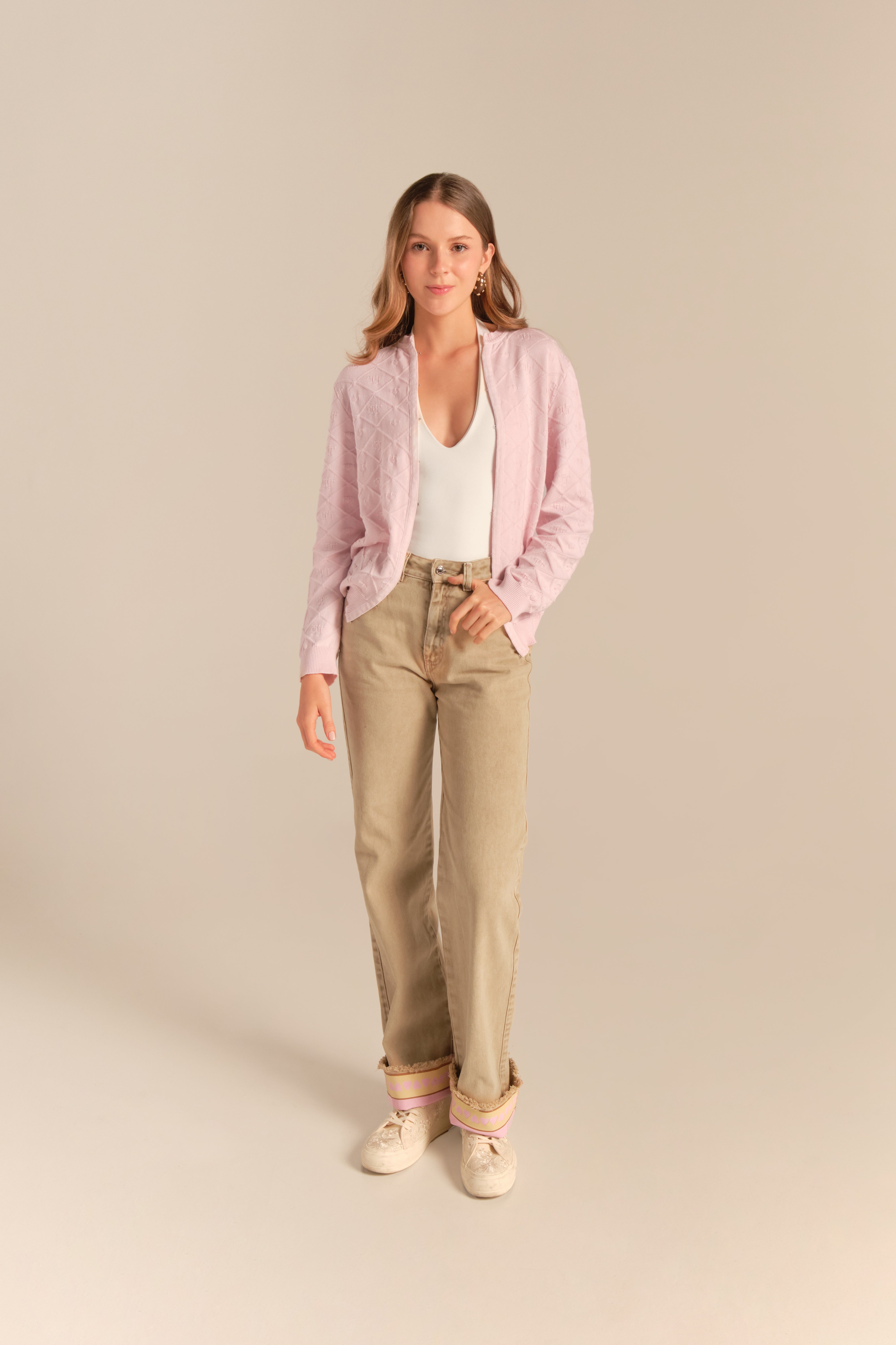 Hecho en tela doble gruesa con stretch 100% algodón, que aporta estructura y confort a cualquier silueta.