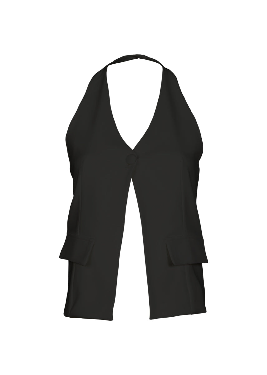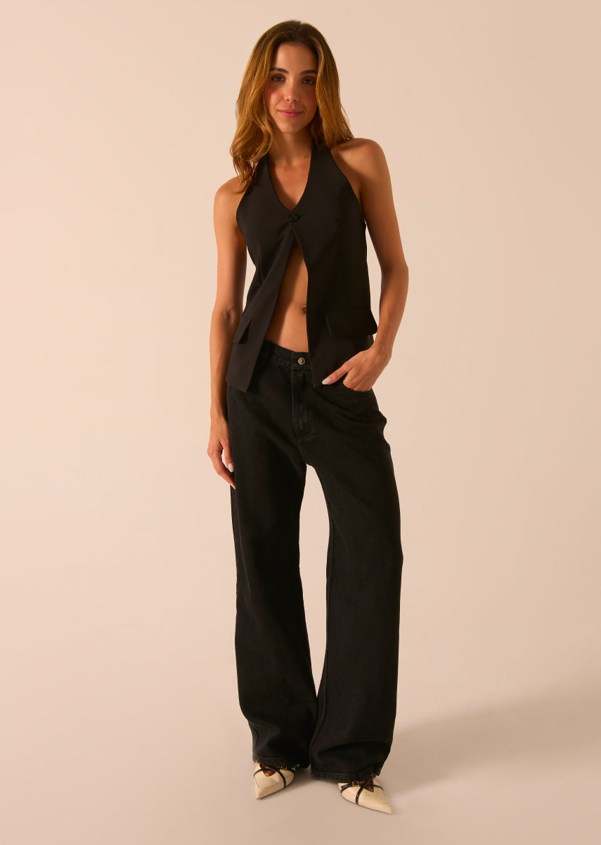 Nuestro Time Top es una blusa tipo chaleco con escote halter profundo,hombros descubiertos y espalda semiabierta que aportan un aire moderno y sofisticado. Sus cortes verticales estilizan la silueta y los bolsillos falsos decorativos añaden un detalle distintivo, creando una prenda versátil que equilibra elegancia y diseño contemporáneo. Fabricado en dril, elegante.